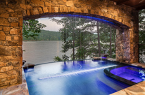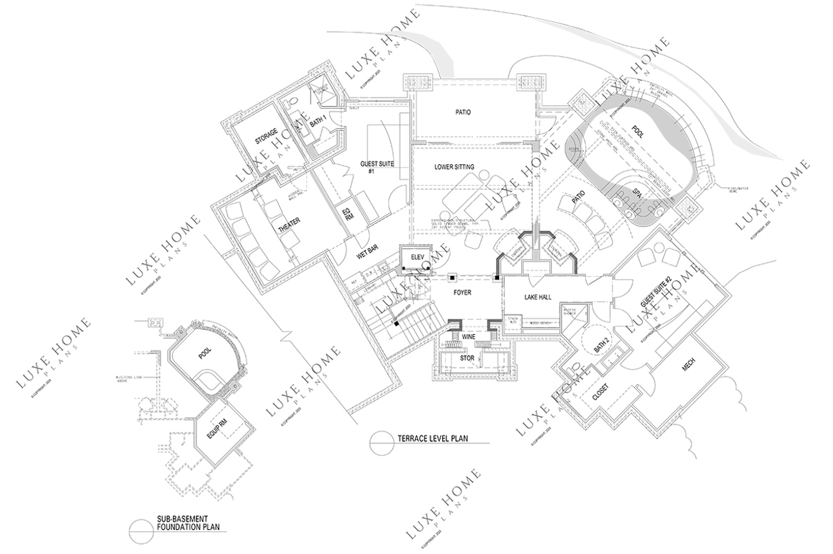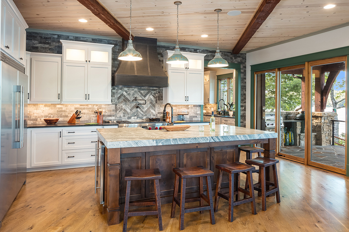 The Brentwood is a 5 bedroom 5 ½ bath home featuring a large bunkroom as one on the bedrooms on the upper floor and an elevator to reach all 3 levels. The terrace level is set up for a nice pool that is partially covered by the living space above. With a very open floor plan the home is ideal for entertaining as the outdoor spaces flow indoors seamlessly. The grill porch will be a popular spot among friends and family. Master suite on the main level and Douglas Fir timber accents through the home make this home this home a great gathering place for friends and family.